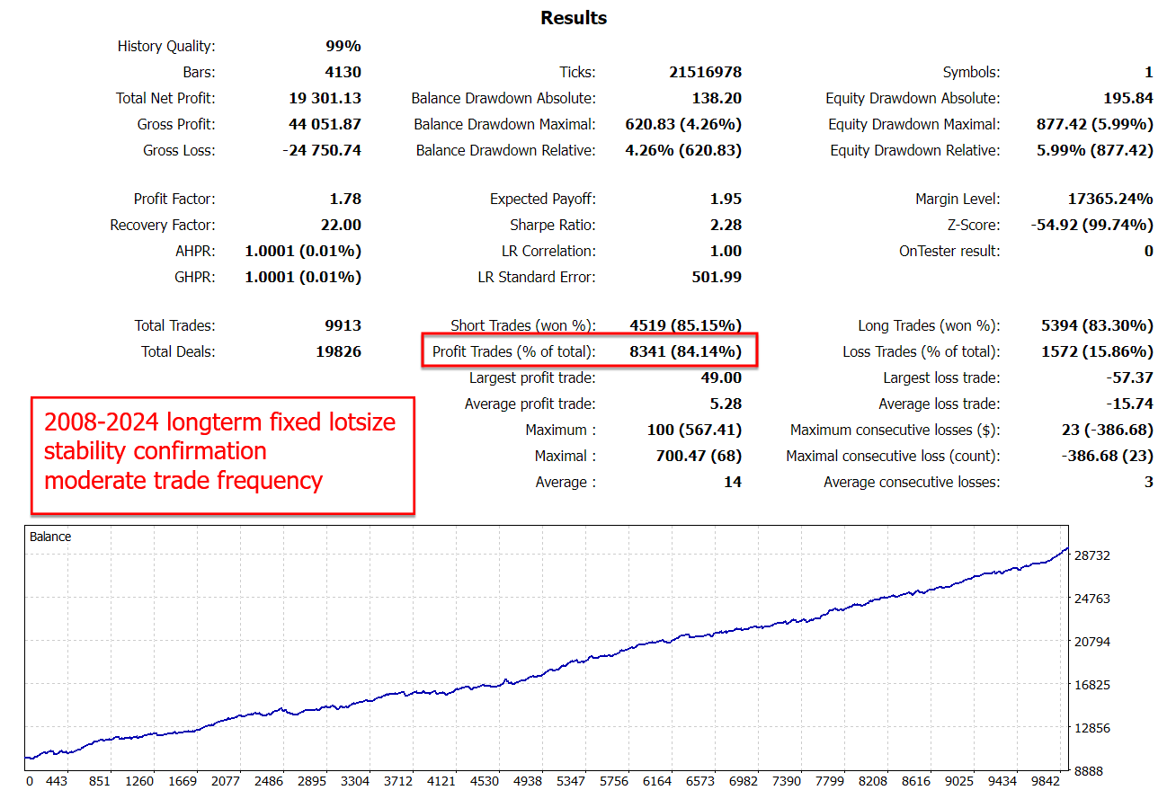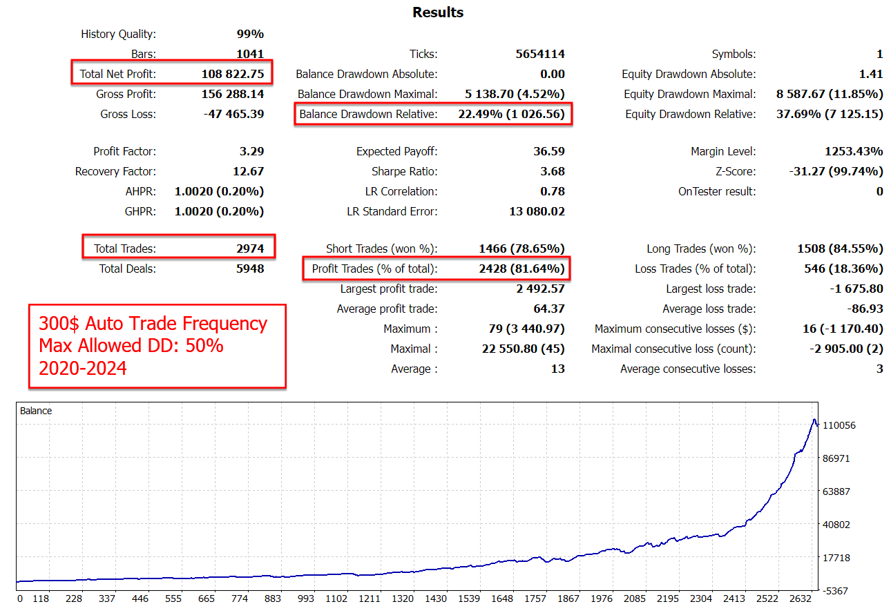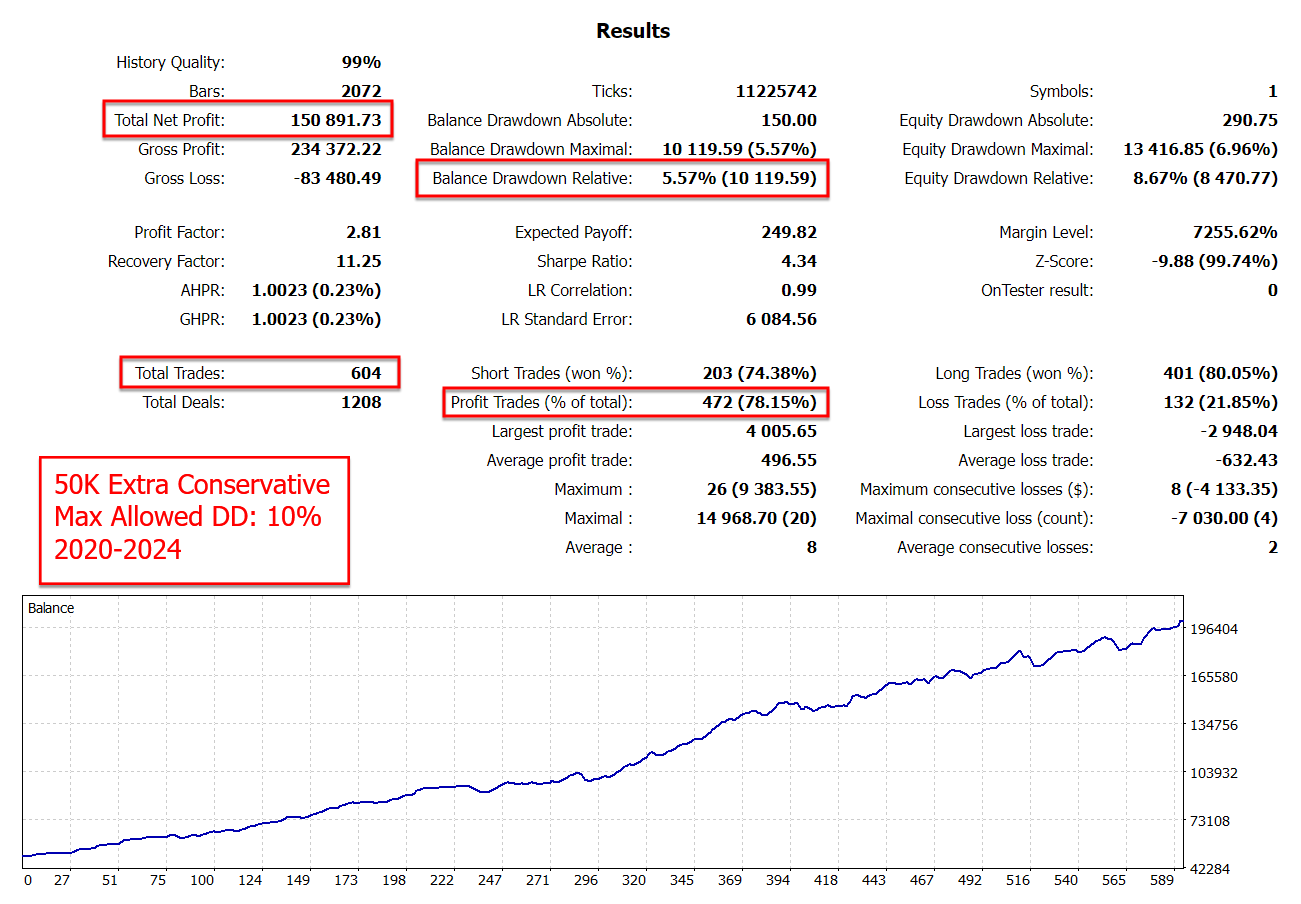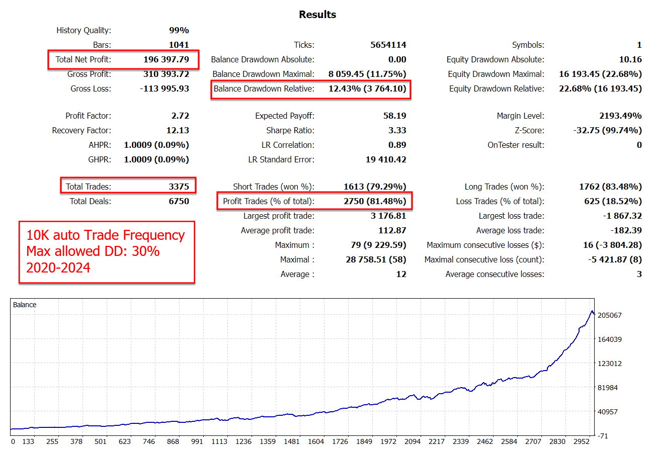 Use slower trade frequency, smallest lot size, conservative SL/TP multiplier, ideal for new traders or small accounts.